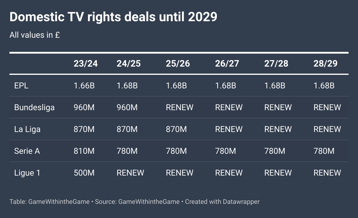 If you didn’t know it already, the EPL’s deal solidifies their position as the dominant football league and one which will earn up to 50% more than their rivals each and every season until 2029 - and that’s best case for the other Big Five.